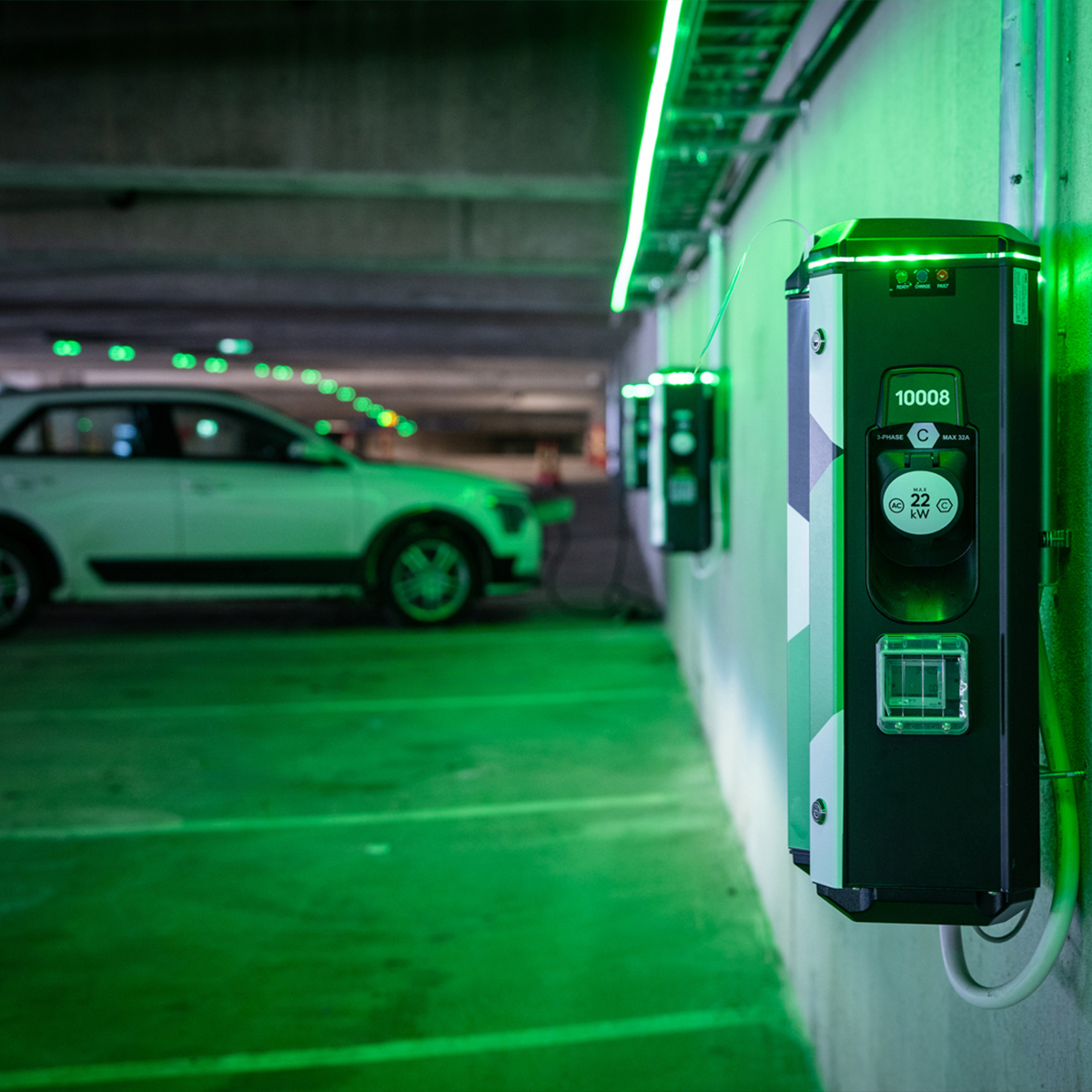 2. Anslut laddningskabeln till laddningspunkten och fordonet. Tryck på Starta. Laddningen börjar.