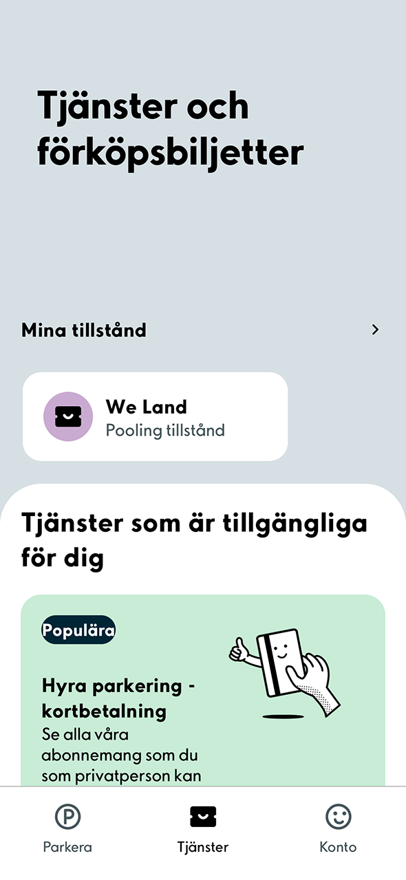 1. Välj först fliken Tjänster nedan för att se dina egna tillstånd. Välj sedan Pooling-tillstånd under punkten Mina tillstånd.