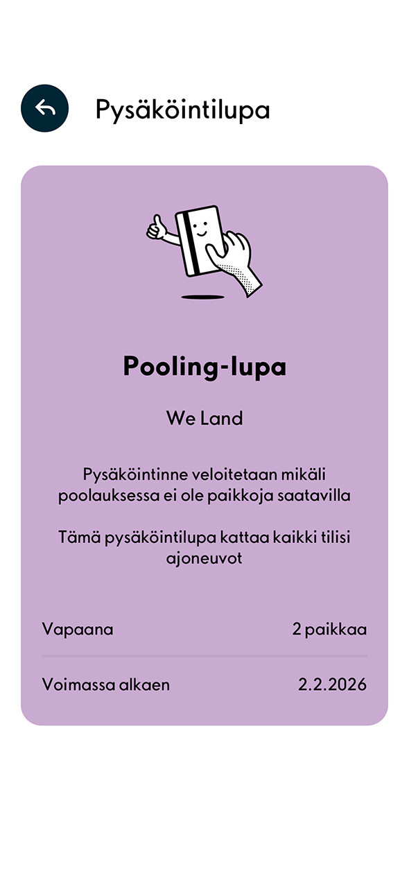 3. Voit nyt pysäköidä kohteessa.
