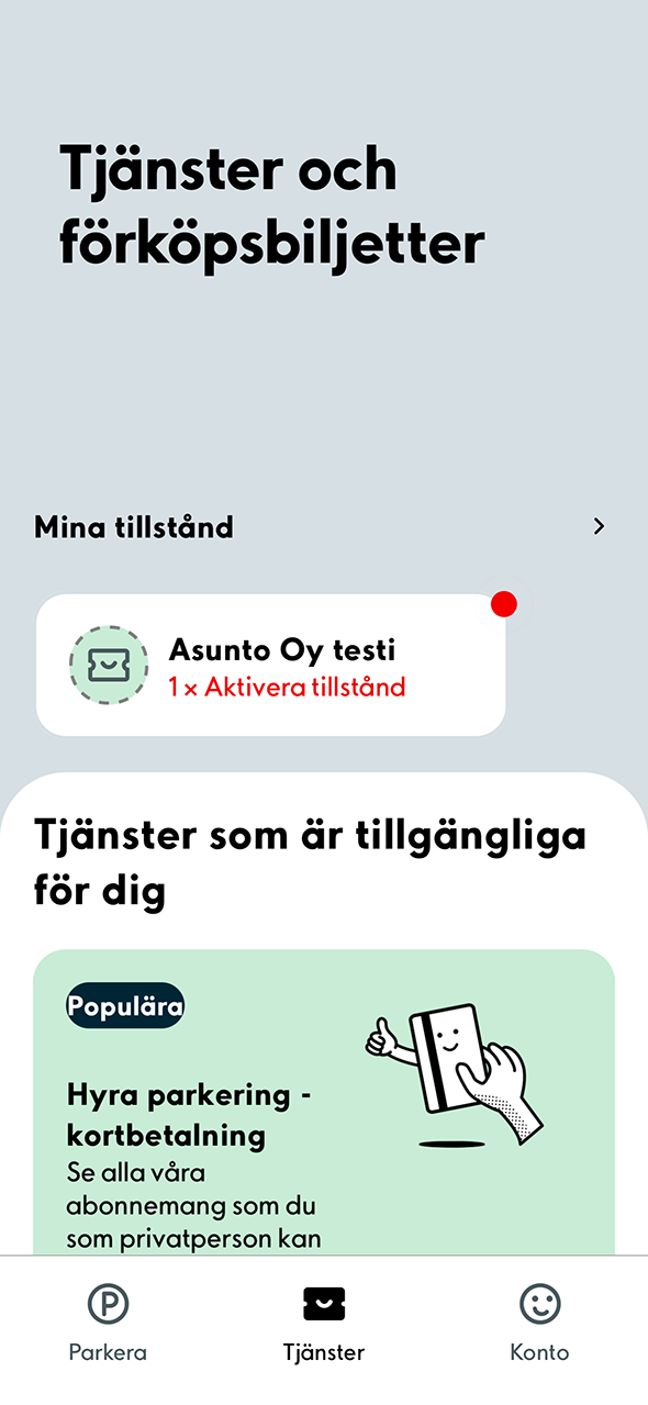 1. Välj fliken Tjänster längst ned på skärmen. Välj sedan det tillstånd som inte har aktiverats.