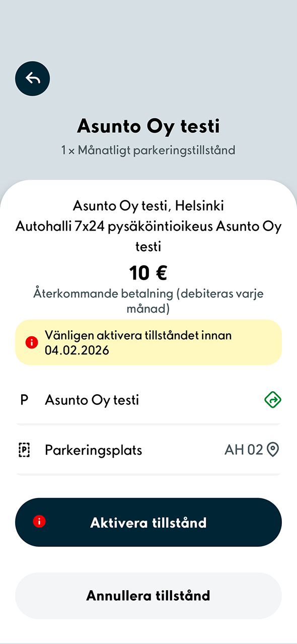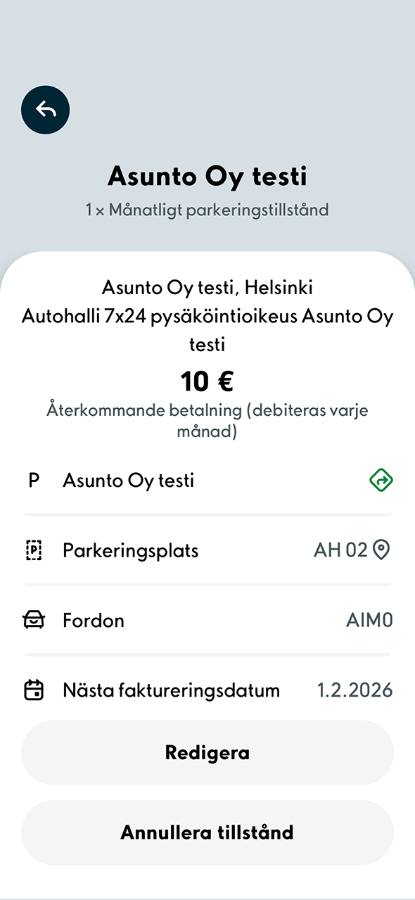 2. Du kan byta fordon eller betalkort genom att välja Redigera. Om du vill annullera tillståndet helt, välj Annullera tillstånd.