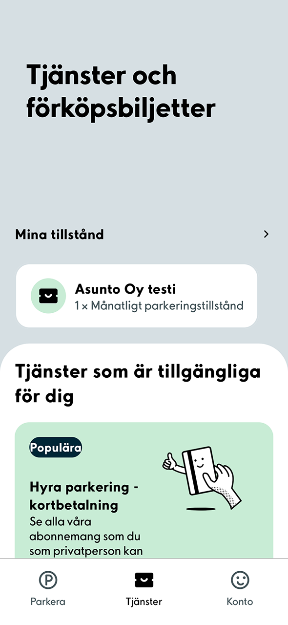1. Efter köptransaktionen visas dina giltiga tillstånd på fliken Tjänster. Om du vill göra ändringar i ett tillstånd som du har köpt, ska du välja tillståndet i avsnittet Mina tillstånd.