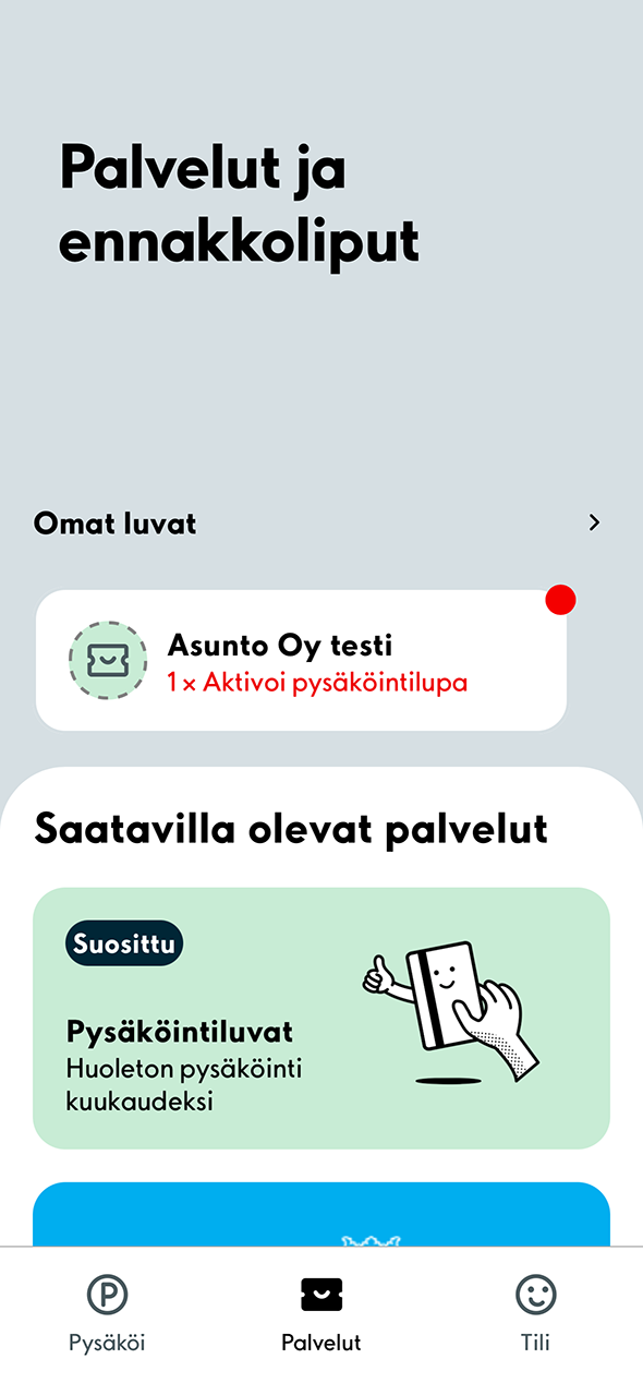 1. Valitse näytön alareunasta Palvelut -välilehti. Valitse sitten lupa joka on aktivoimatta.